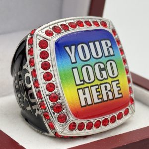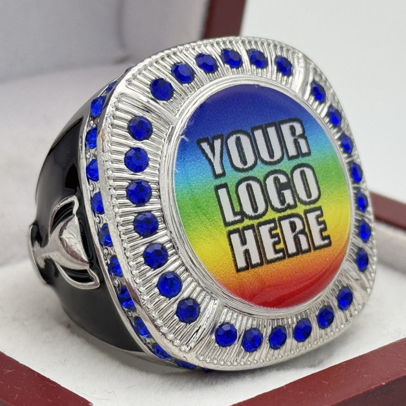 Our add your logo awards are the perfect way to honor your teams victories. This service allows us to put your logo onto our rings. To personalize your players accomplishment, we even have an option to engrave their names on the side of a ring with your logo on the top. This is another option for a unique award with a faster turnaround time than other custom awards. The lead time is currently 1-2 weeks and can vary based on quantity.