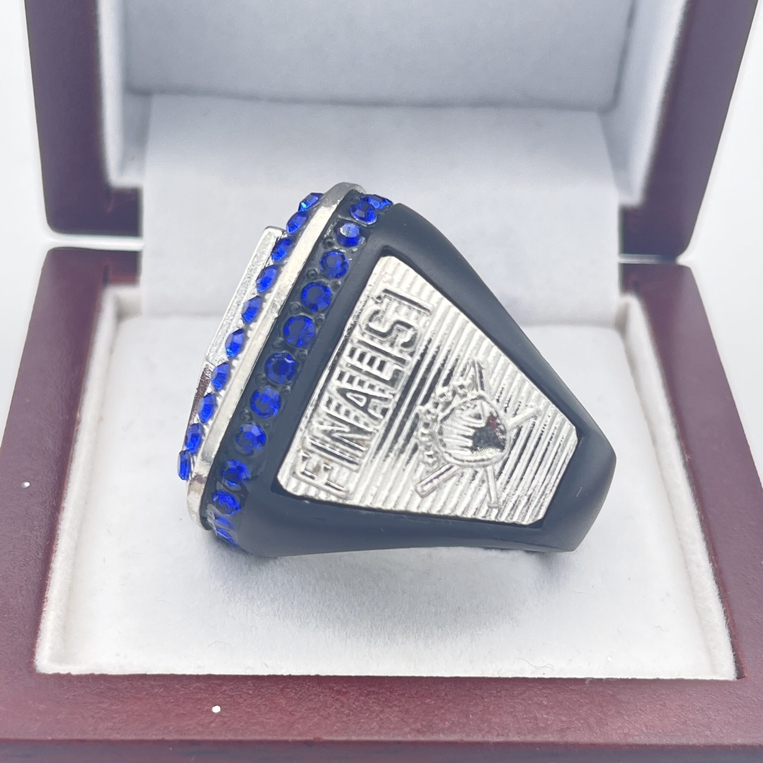 Home Shop By Sport SOFTBALL AWARDS 5 STAR USAS FINALIST RING — BLACK BODY, BLUE STONES (Item #39-57)