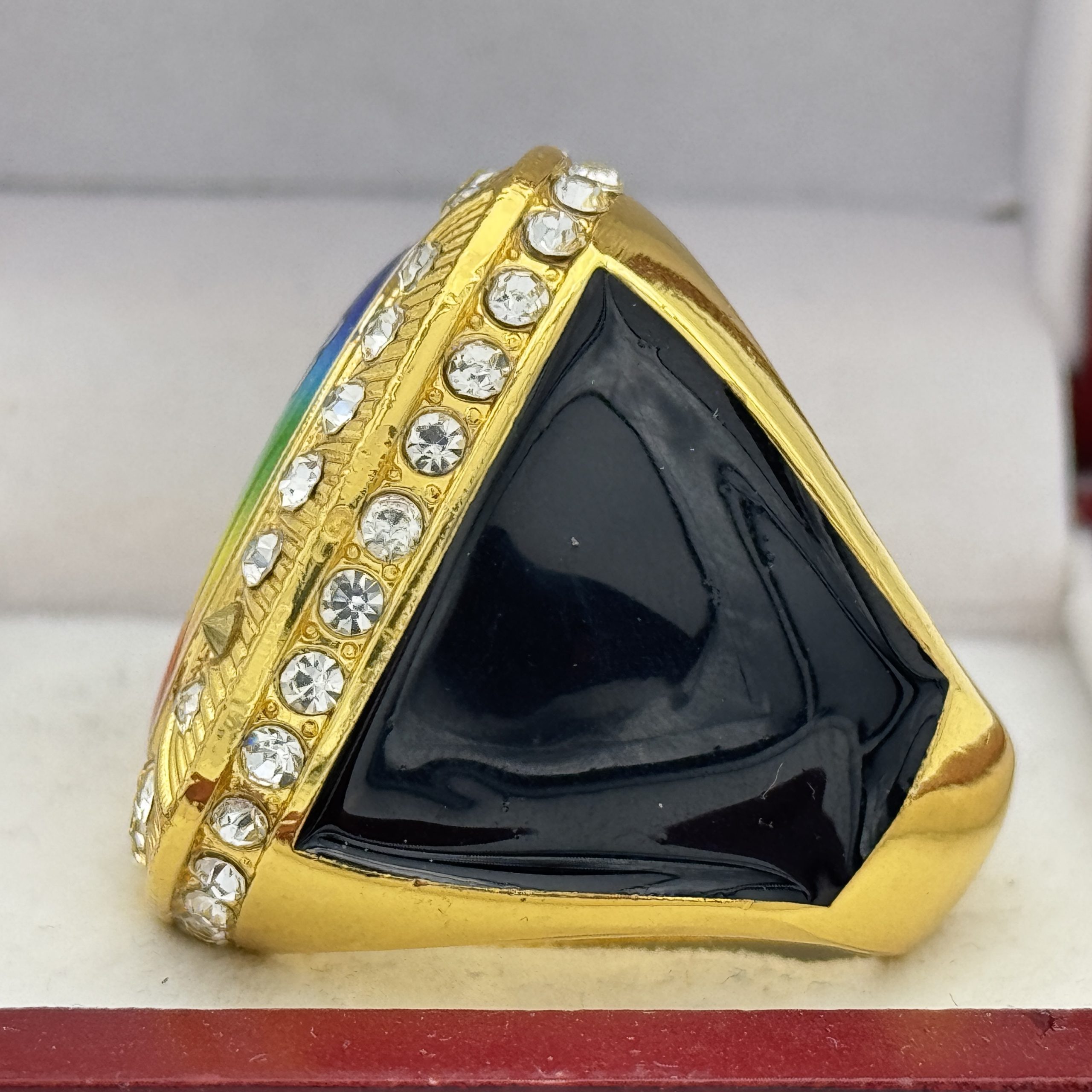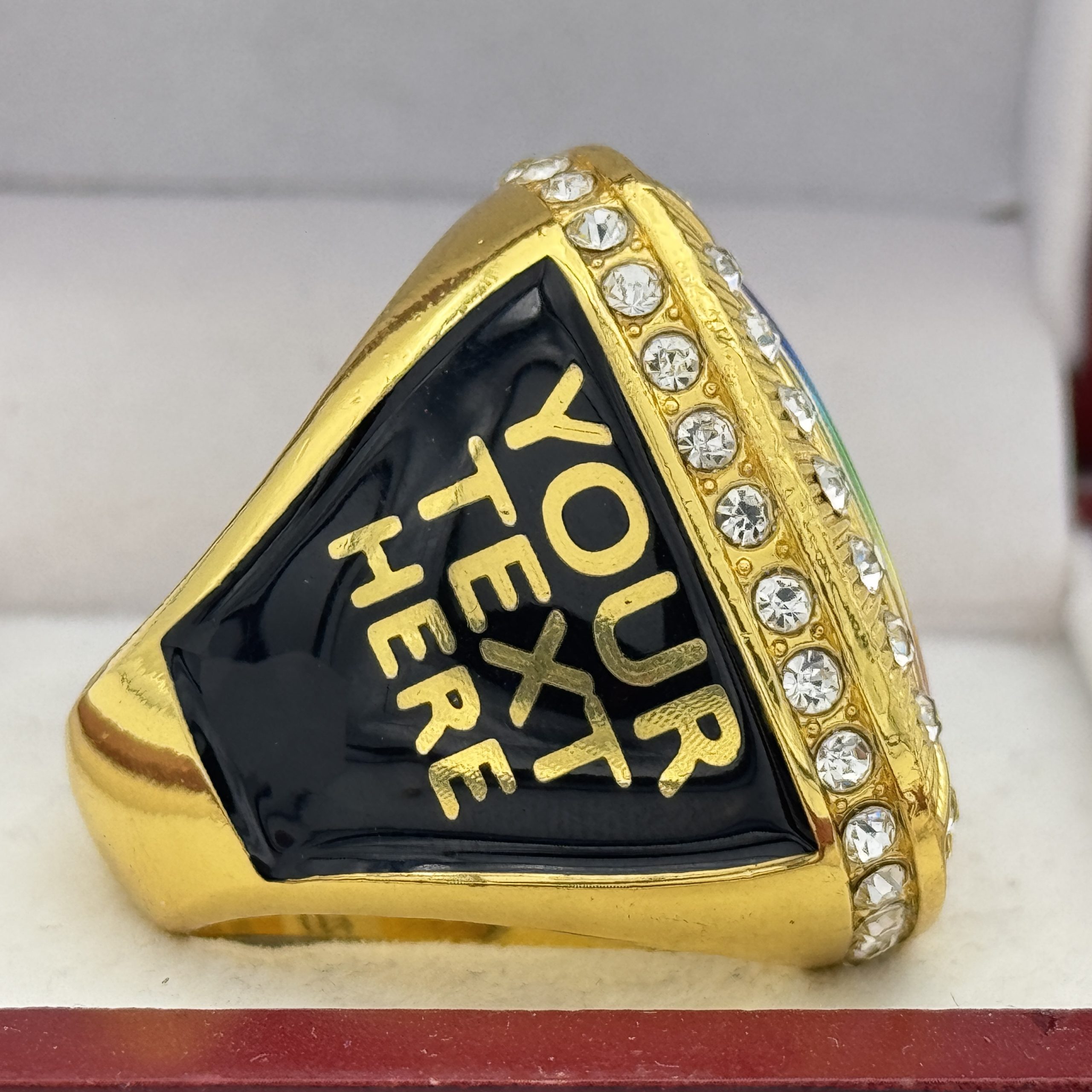 DELUXE USAS CHAMPION RING — GOLD BODY, CLEAR STONES (Item #39-68)
