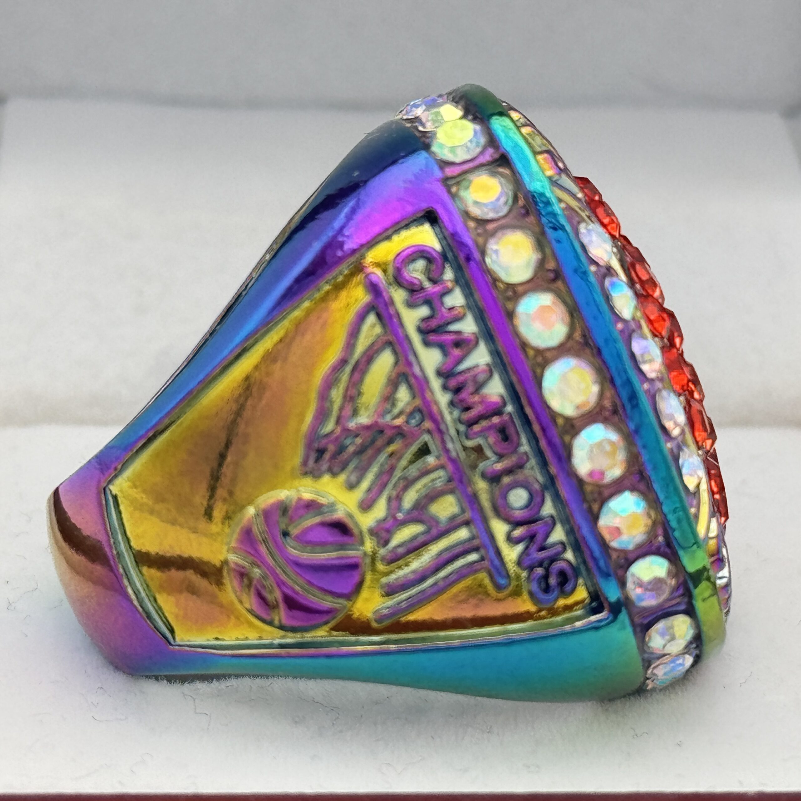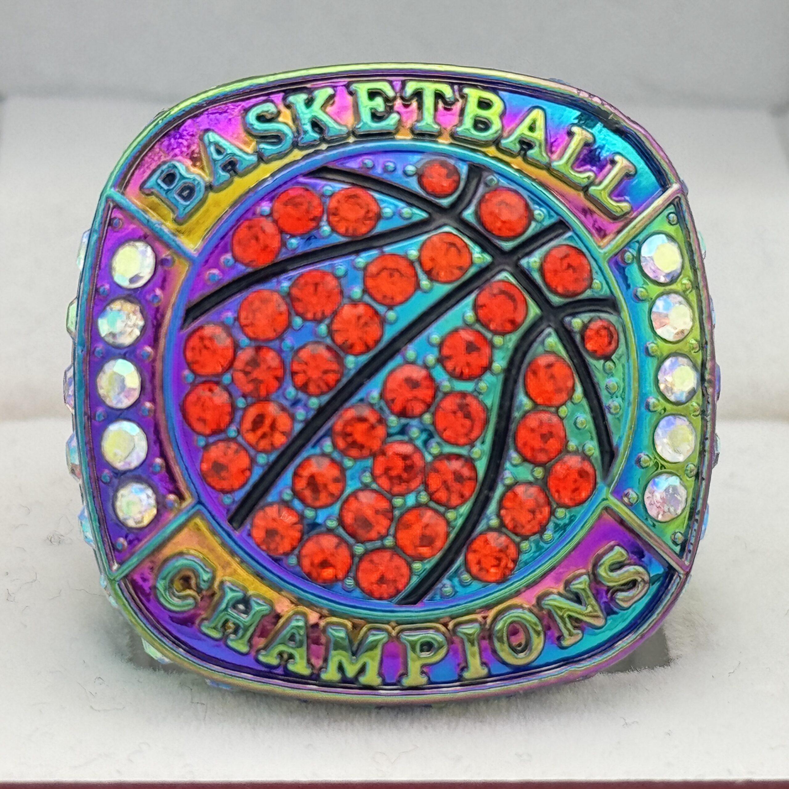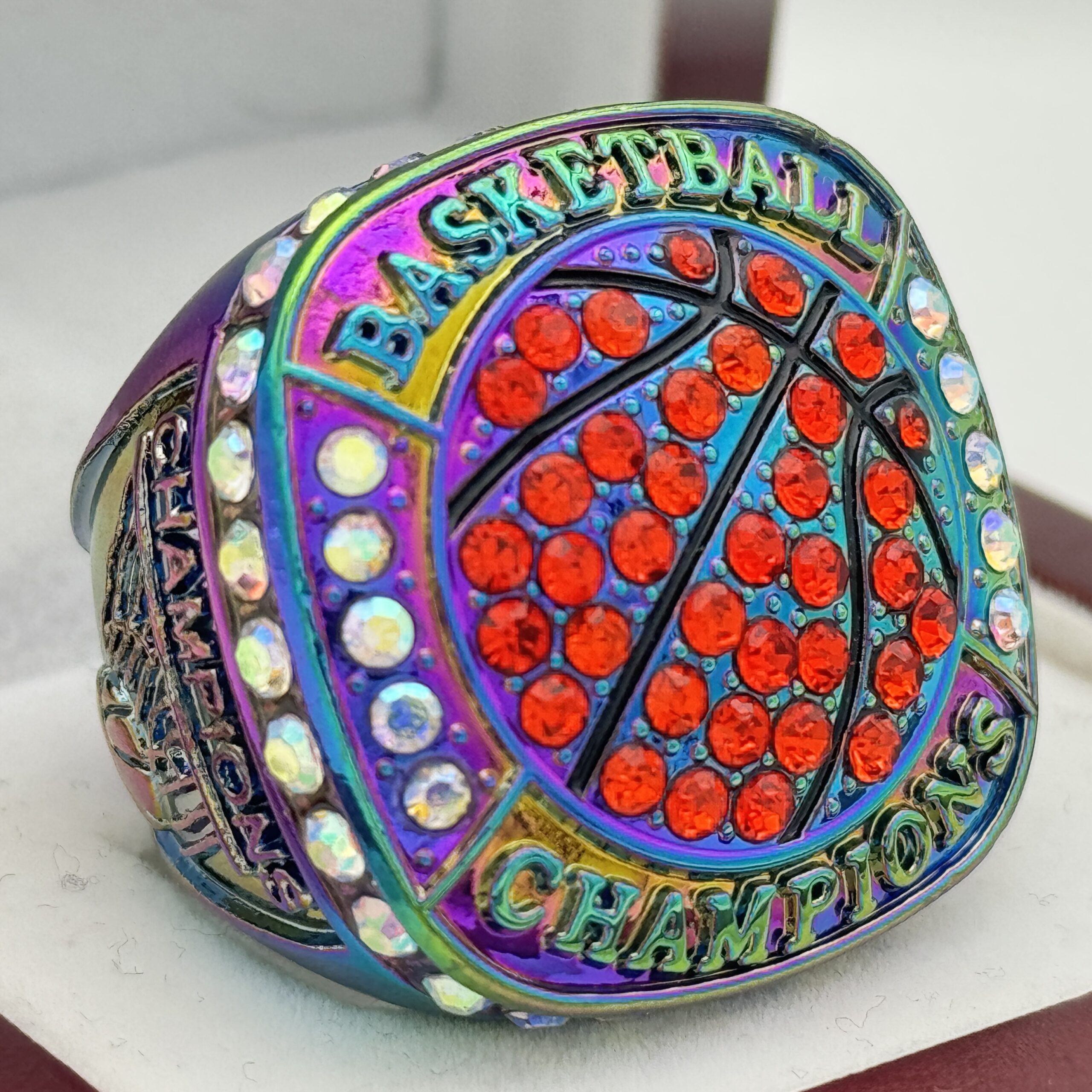 BASKETBALL CHAMPION RING — RAINBOW BODY, ORANGE STONES (Item #52-44)