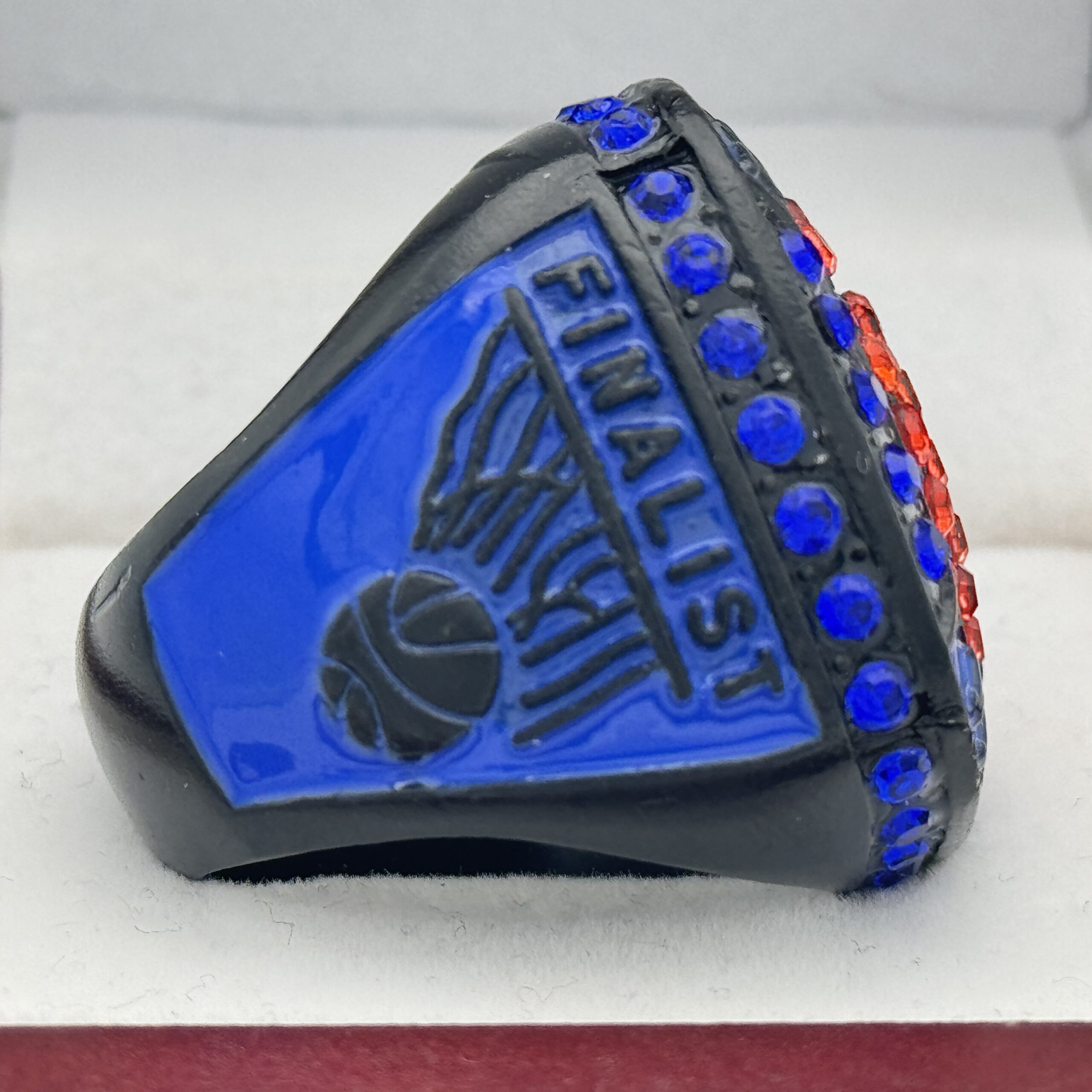BASKETBALL FINALIST RING — BLACK BODY, BLUE PAINT, ORANGE STONES ON BALL (Item #52-17)