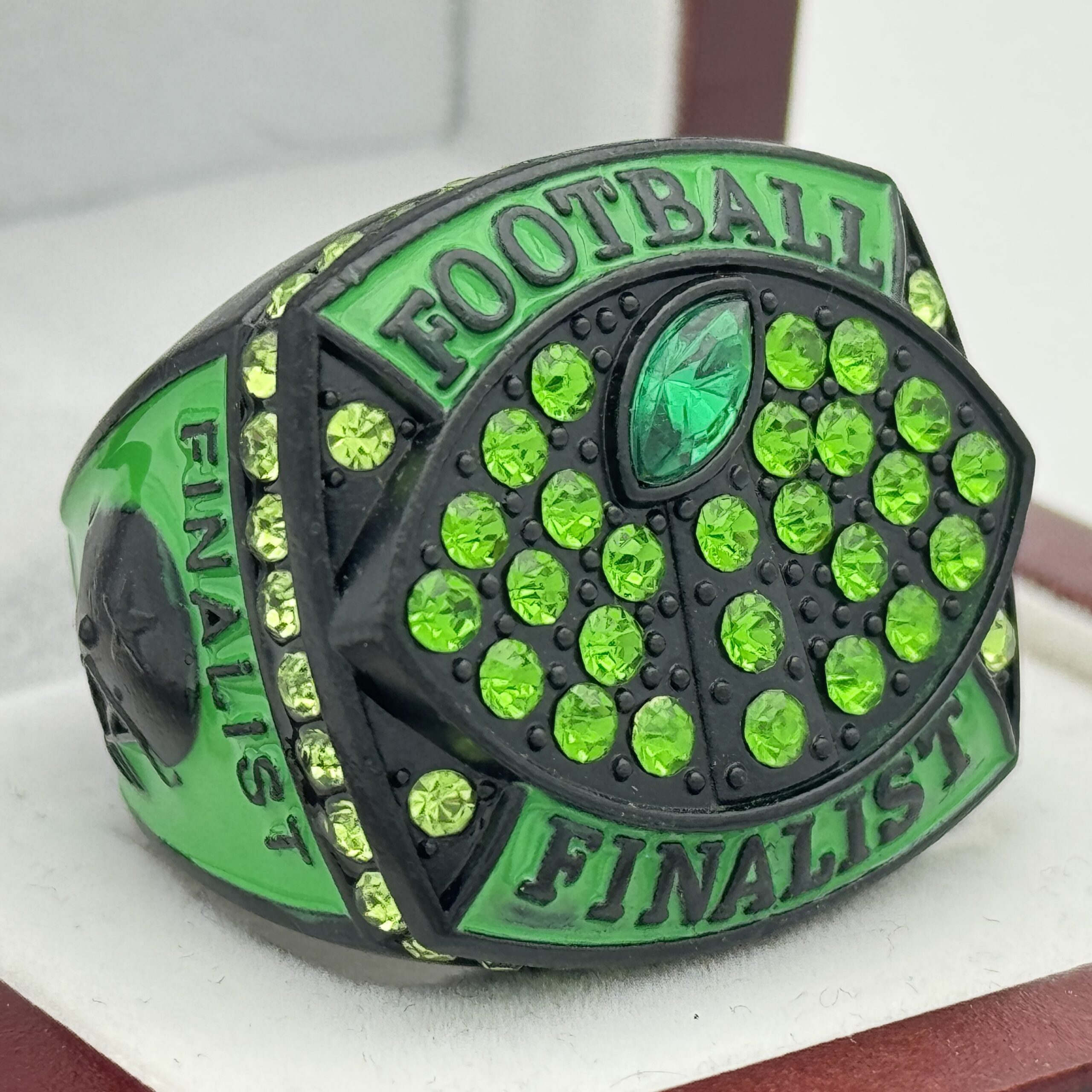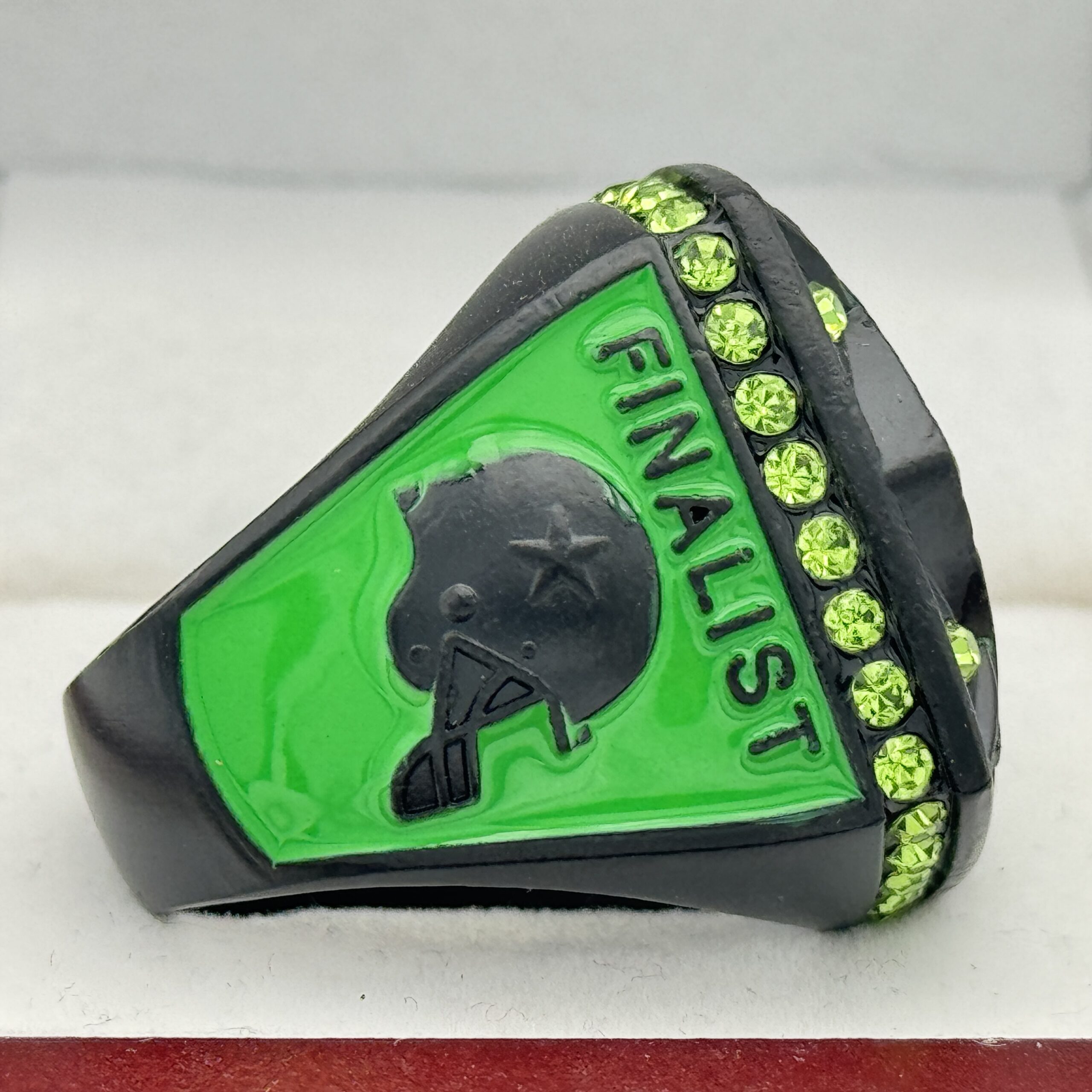 CLASSIC FOOTBALL FINALIST RING — BLACK BODY, GREEN STONE (Item #51-93)