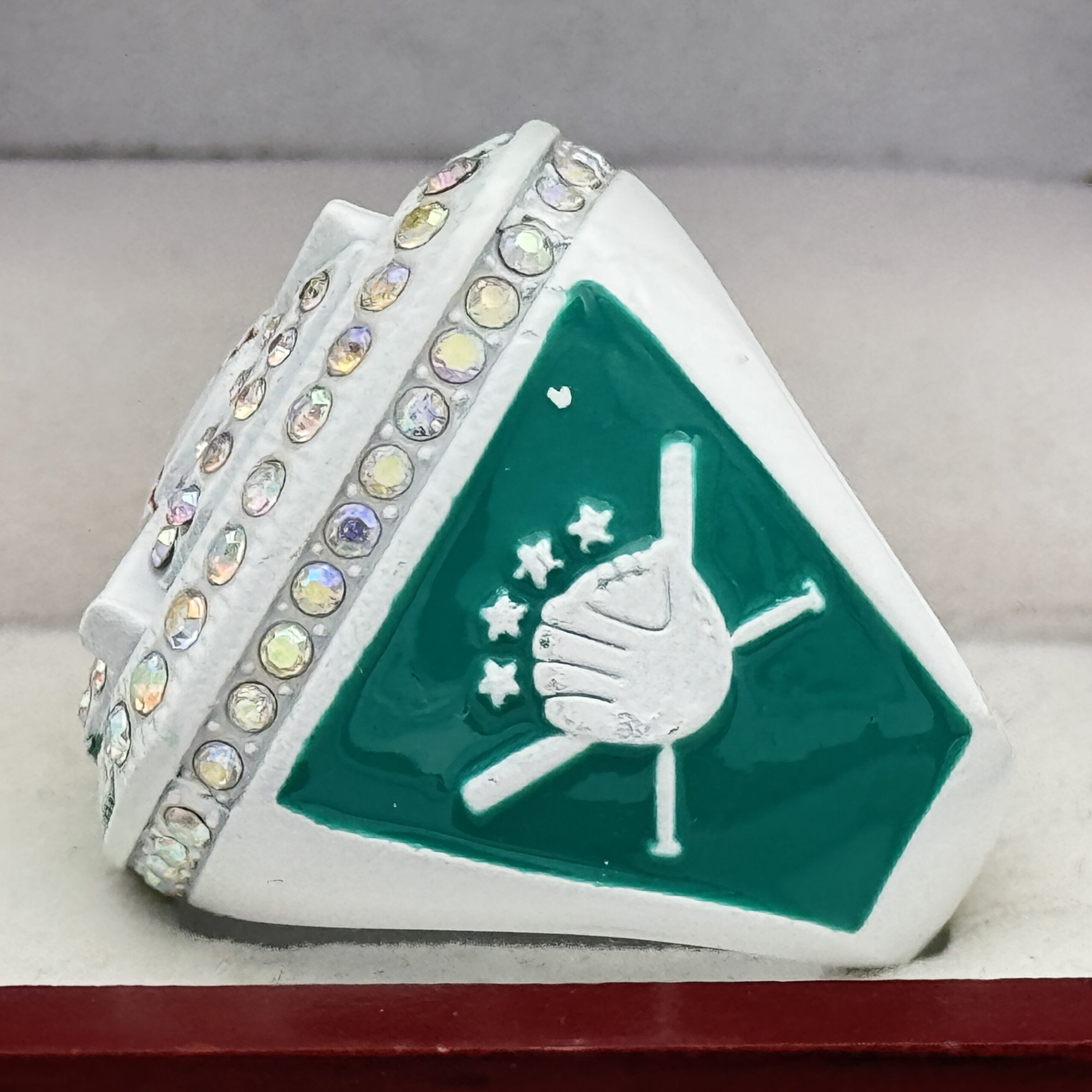 HOME PLATE CHAMPION RING — WHITE BODY, GREEN PAINT (Item #50-124)