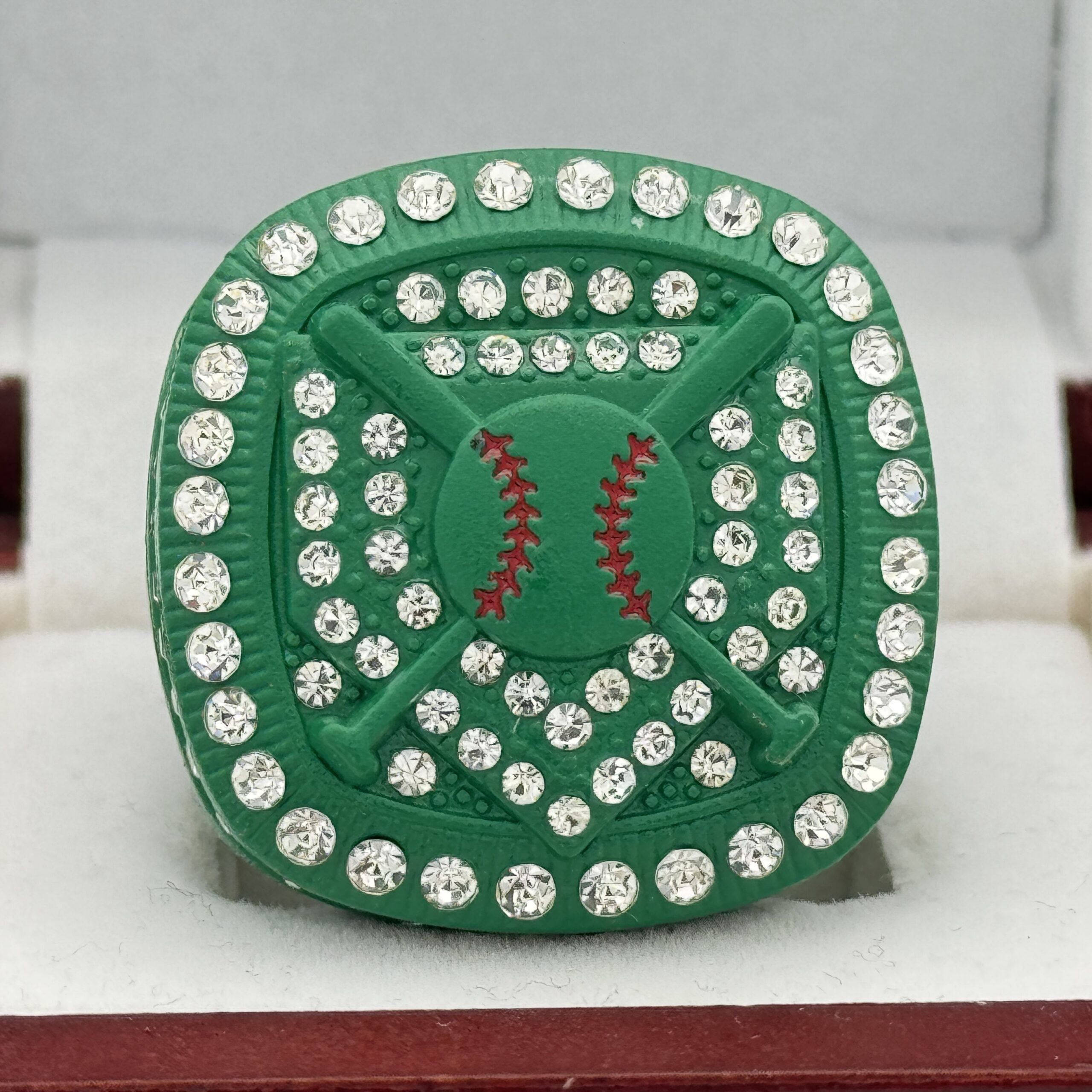 Be the first to review “HOME PLATE PARTICIPATION RING — GREEN BODY, CLEAR STONES (Item #55-41)” Cancel reply