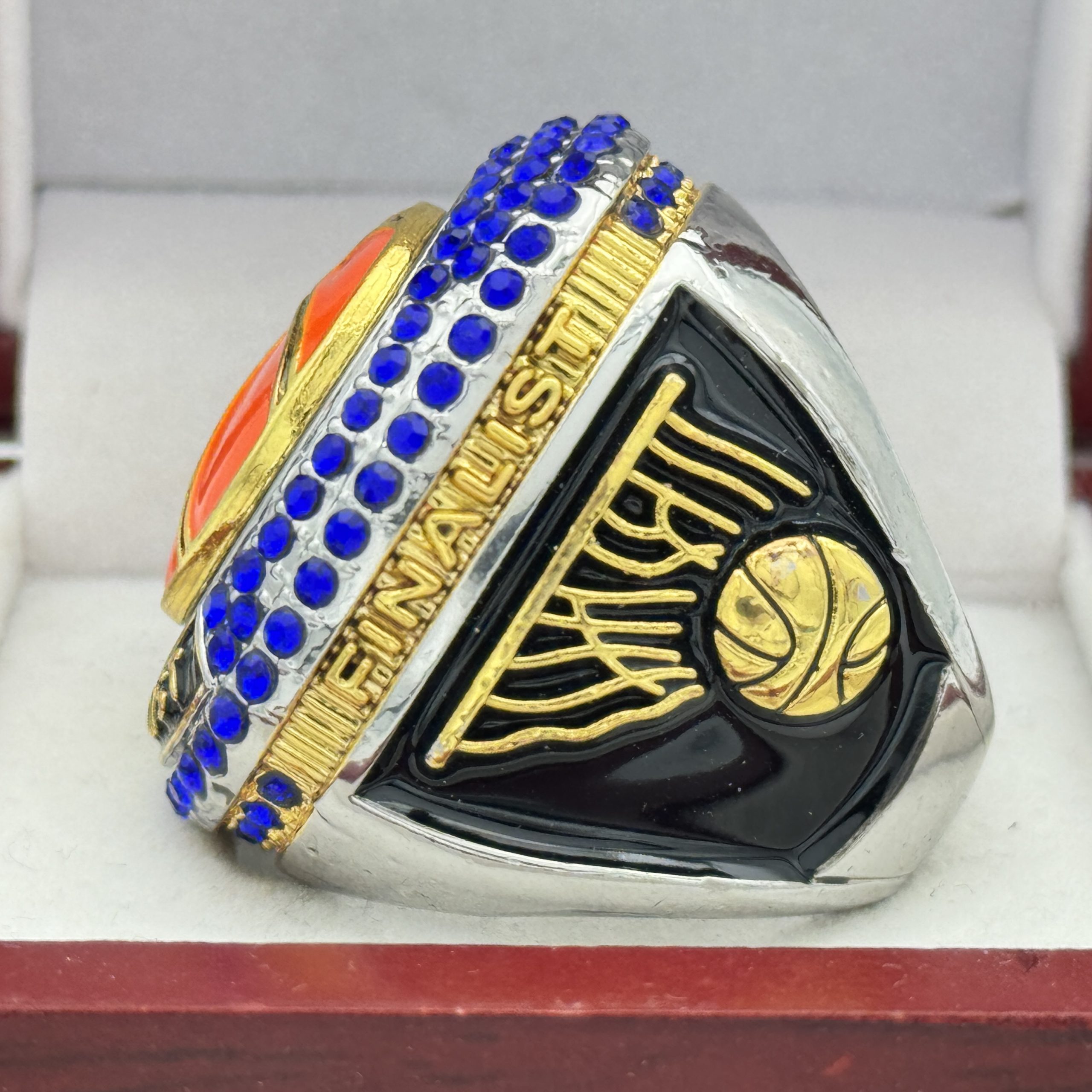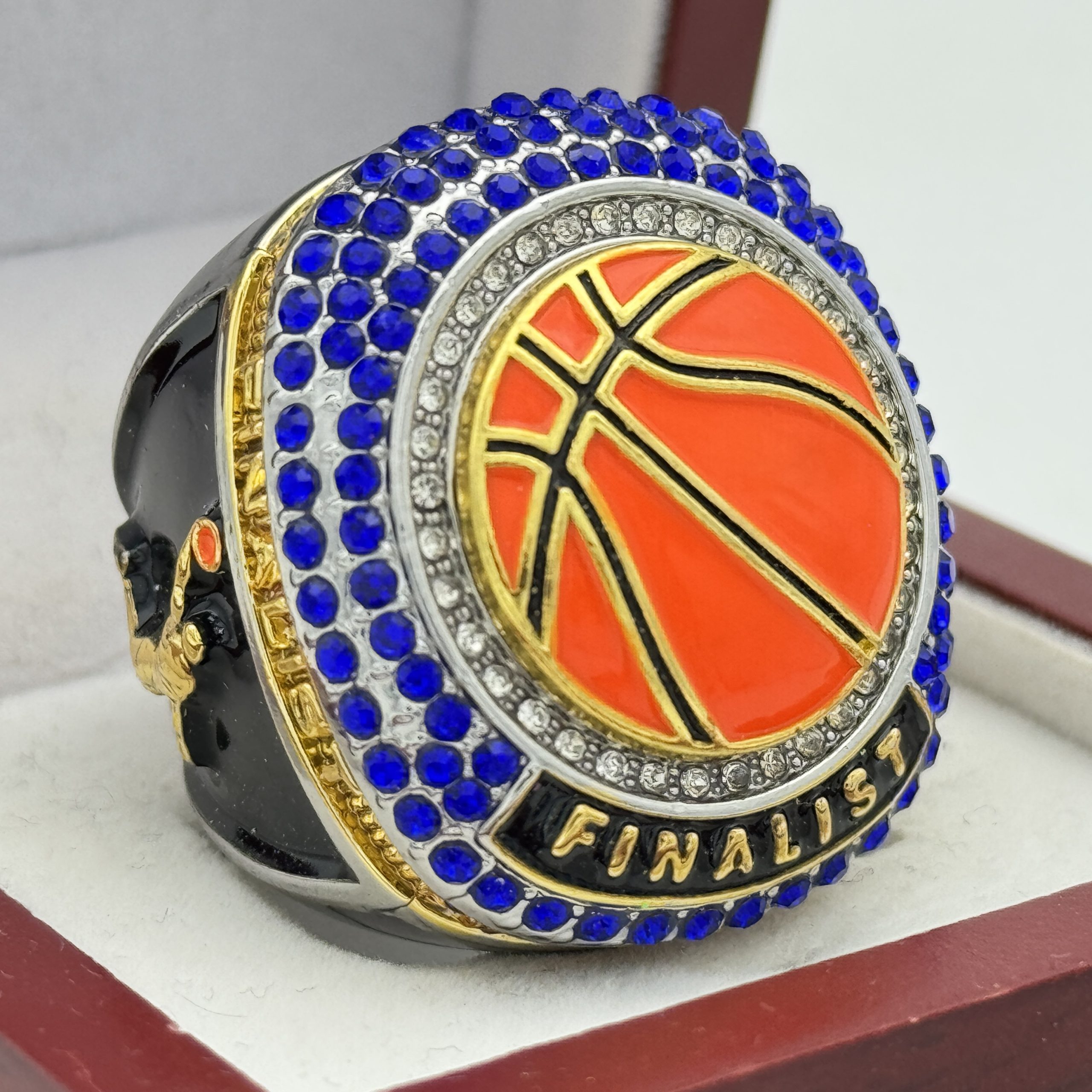 JUMBO BASKETBALL FINALIST RING — BLUE BACKGROUND, BLUE STONES (Item # 52-57)