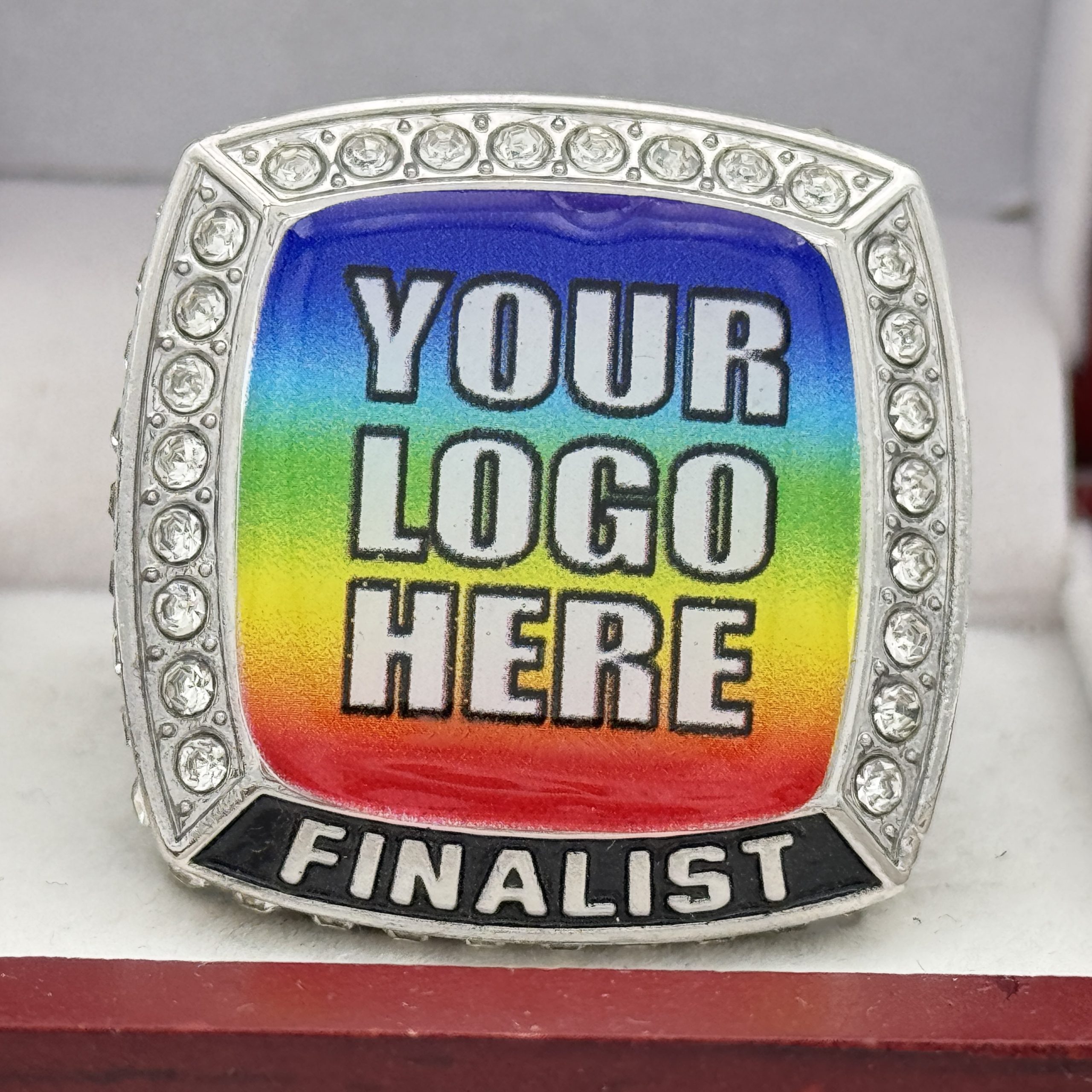 SQUARE ADD YOUR LOGO FINALIST RING — SILVER BODY, CLEAR STONES, 2 ENGRAVABLE SIDES (Item #58-177)