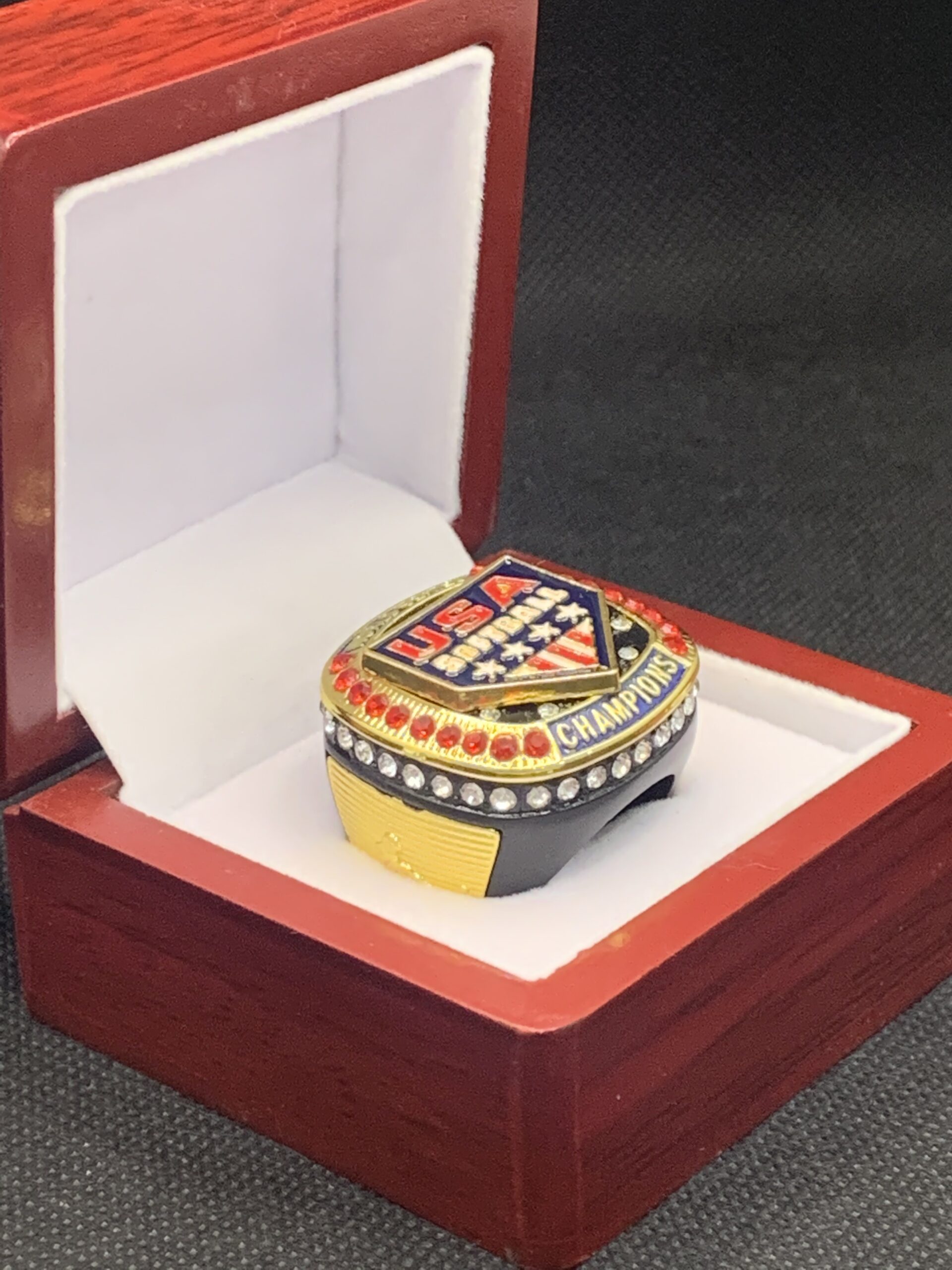 Be the first to review “USA 5 STAR WORLD SERIES CHAMPION RING — BLACK BODY, RED STONES, OFFICIAL LOGO (Item #39-84)” Cancel reply