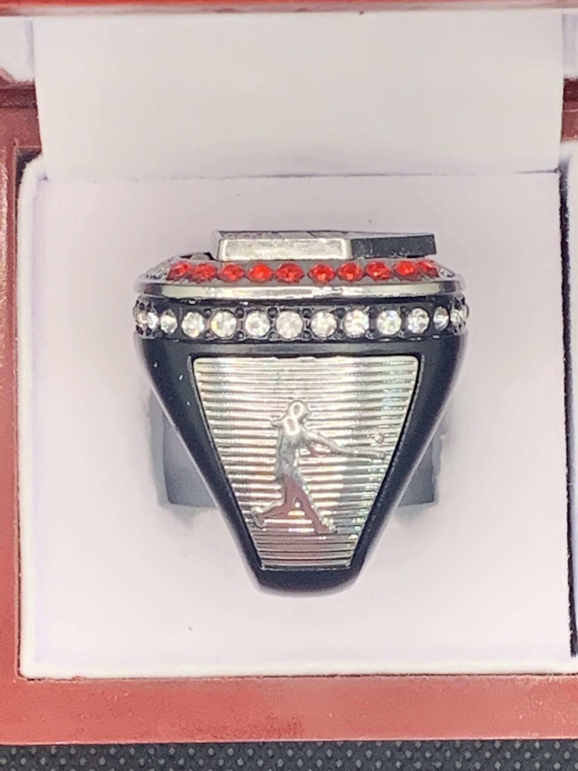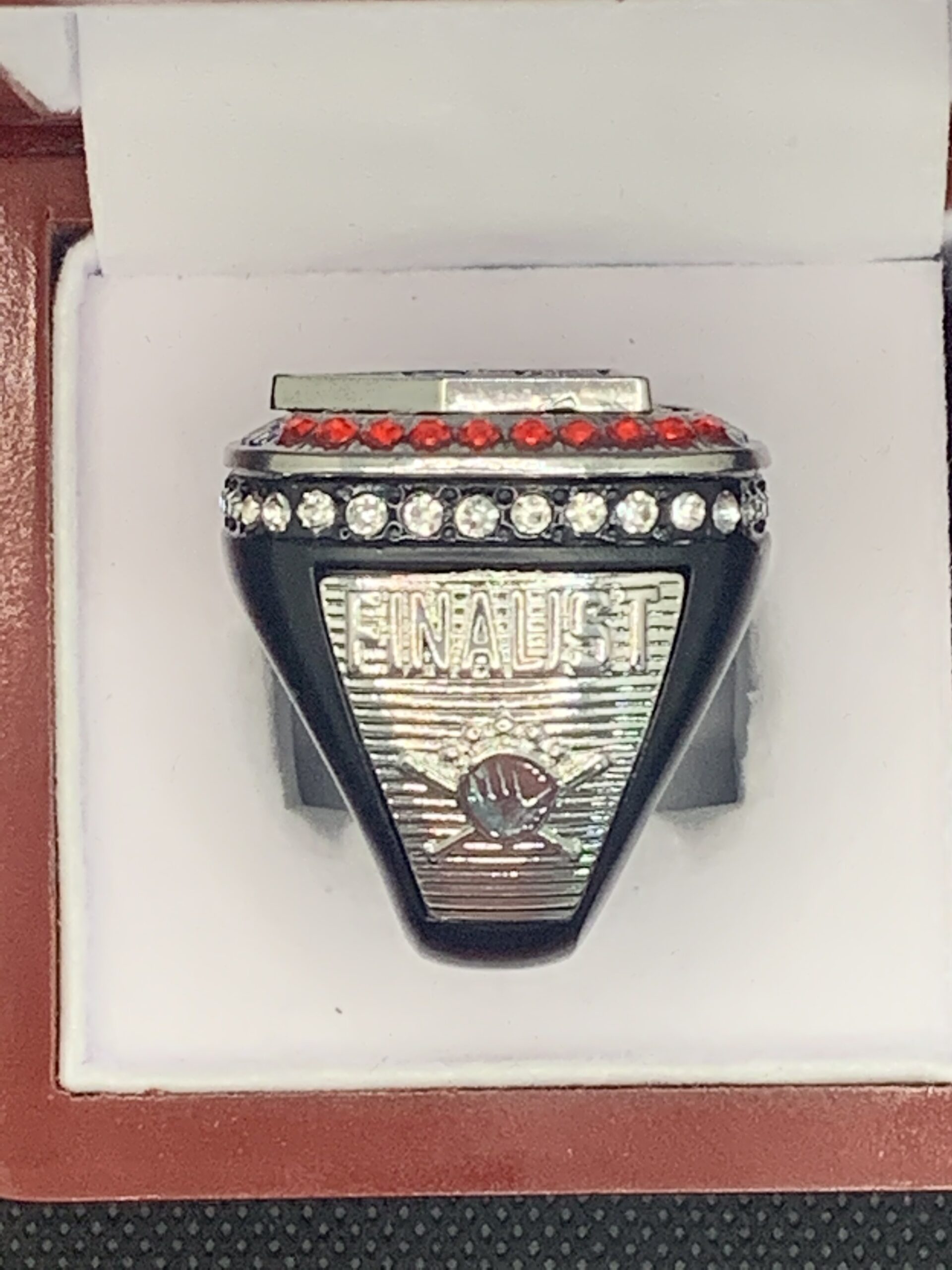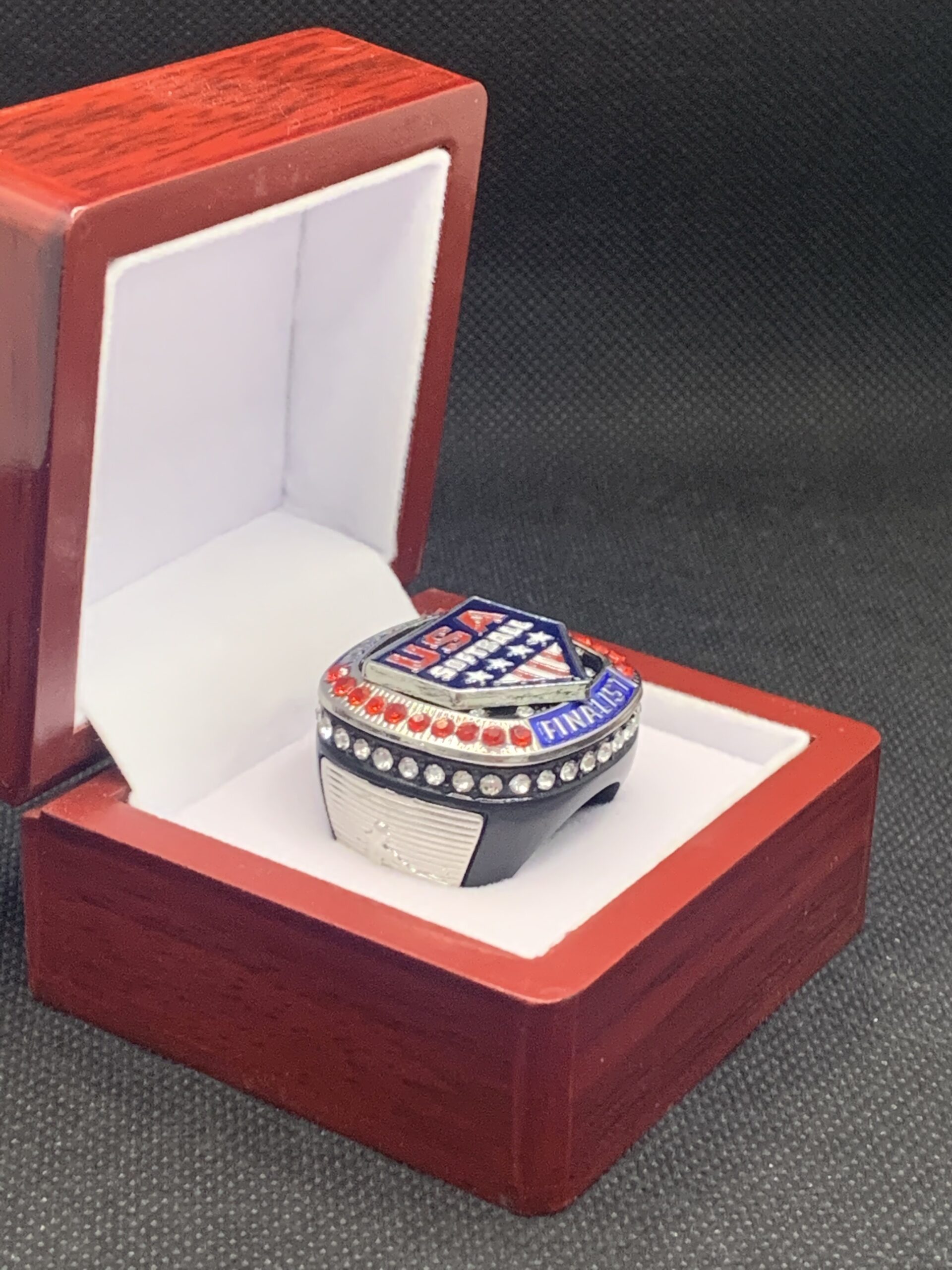 Be the first to review “USA 5 STAR WORLD SERIES FINALIST RING — BLACK BODY, RED STONES, OFFICIAL LOGO (Item #39-81)” Cancel reply