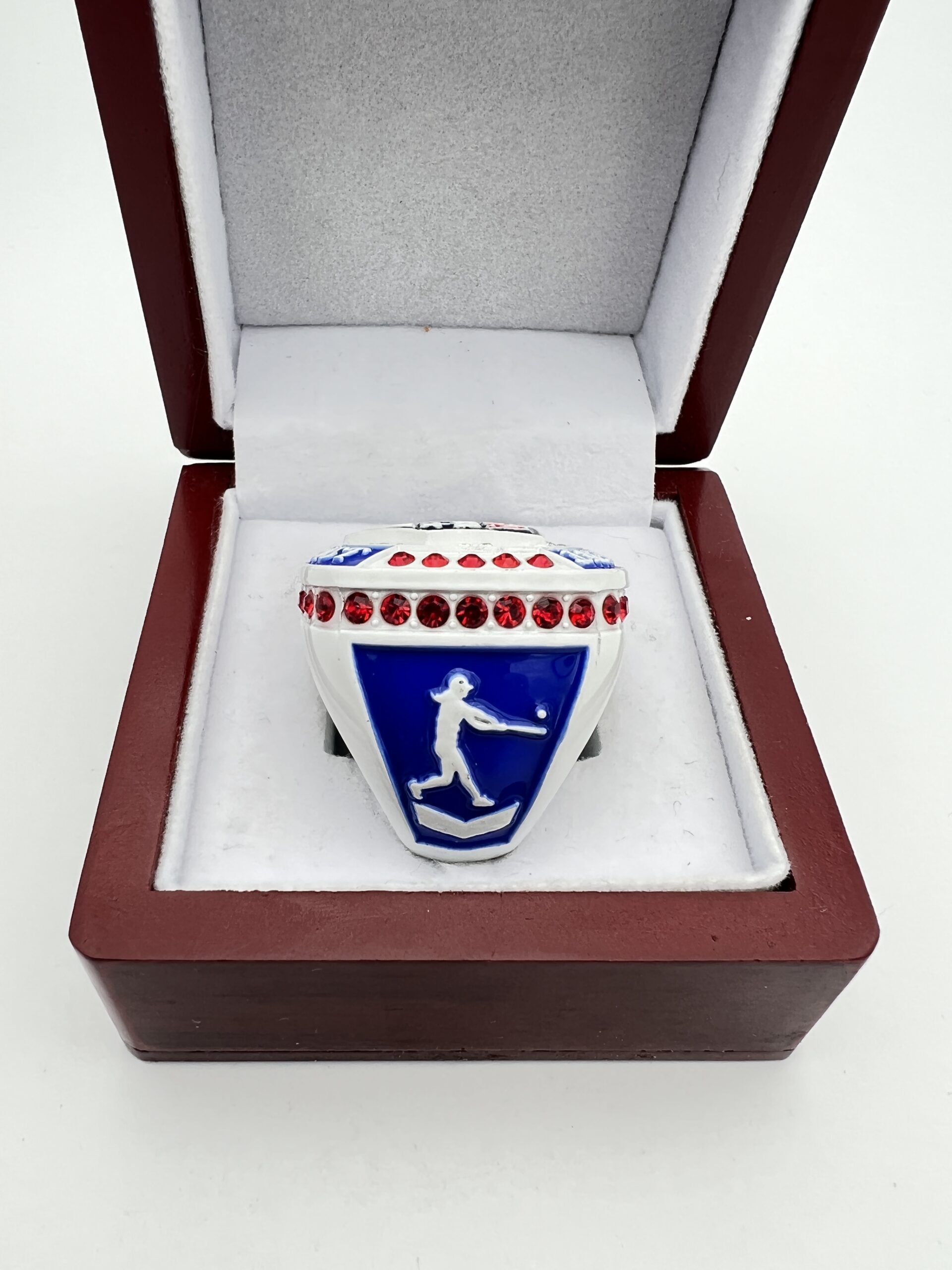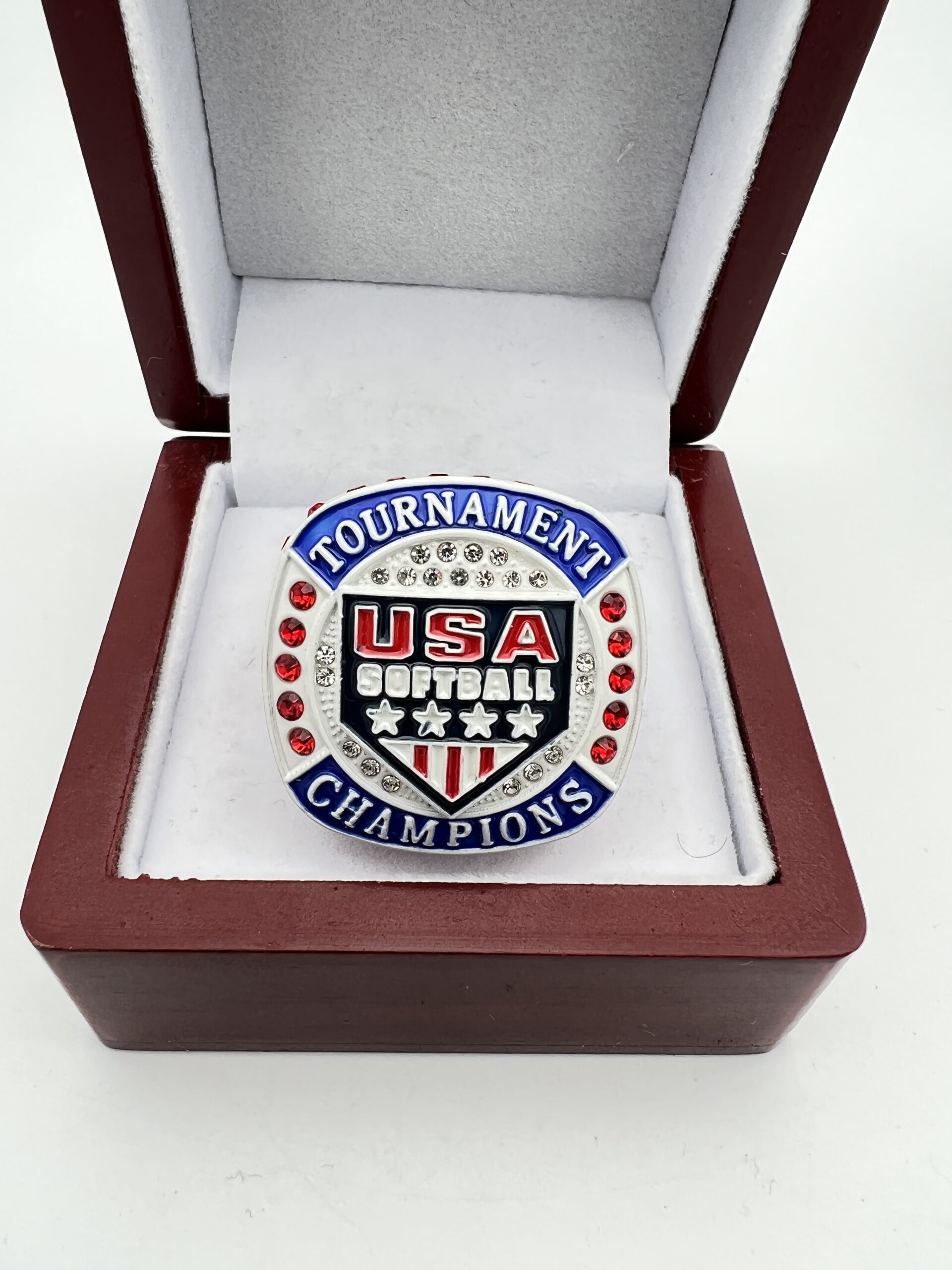 Home Shop By Sport SOFTBALL AWARDS USA HOME PLATE CHAMPION RING — WHITE BODY, RED STONES, OFFICIAL LOGO (Item #39-28)