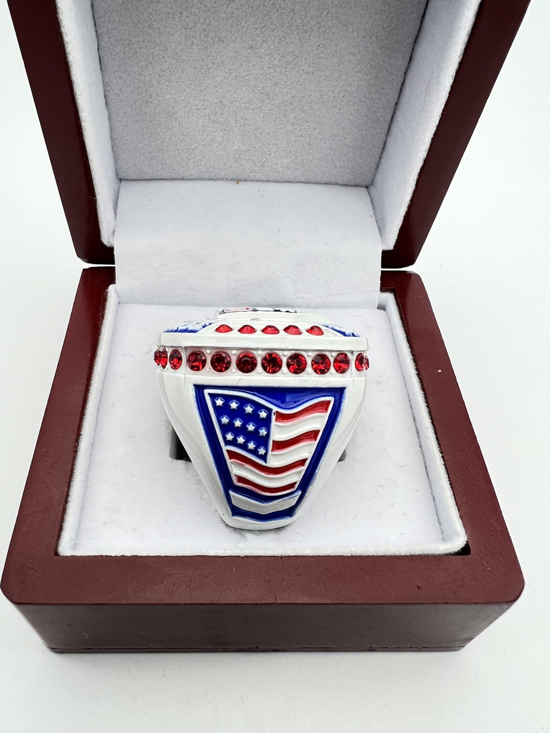 Be the first to review “USA HOME PLATE CHAMPION RING — WHITE BODY, RED STONES, OFFICIAL LOGO (Item #39-28)” Cancel reply