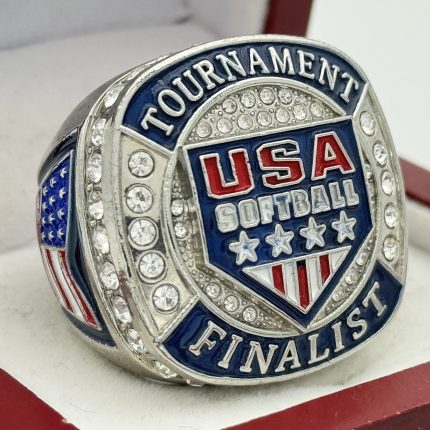 Be the first to review “USA HOME PLATE STATE FINALIST RING — SILVER BODY, RED STONES, OFFICIAL LOGO (Item #39-101)” Cancel reply