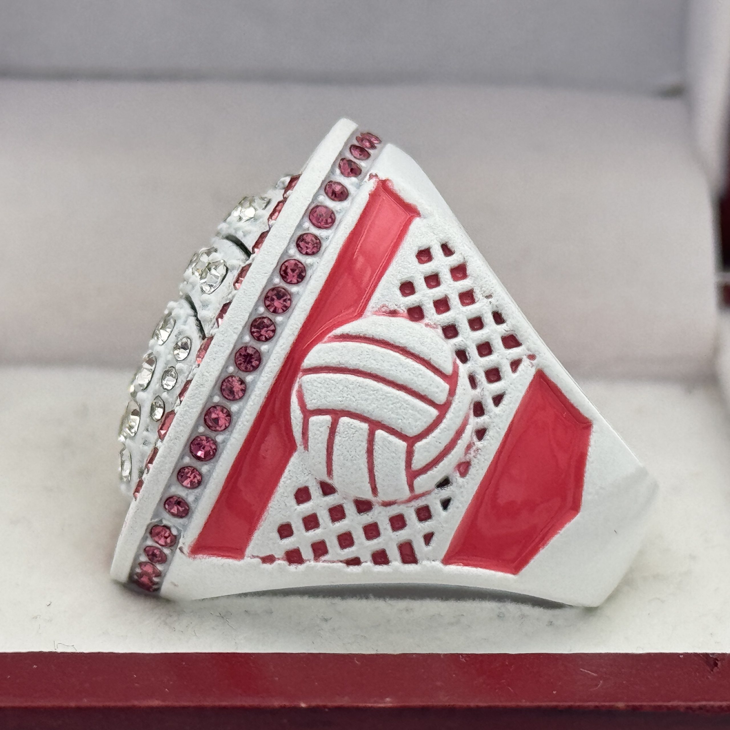 VOLLEYBALL FINALIST RING — WHITE BODY, PINK STONES (Item #56-49)